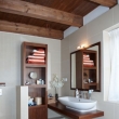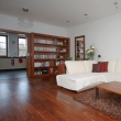Na prosbu klienta jsme navrhli v horním patře domu knihovnu, která má skryté otevírání do pracovny. Robustní konstrukce knihovny dovoluje otevírání skrytých dveří i při plném naložení knihovny. Dalším mobiliářem jsou knihovna v obýváku, konferenčnístolek a několik dalších skříněk, vše v dýze Ořech spolu s leštěnými nerezovými doplňky.